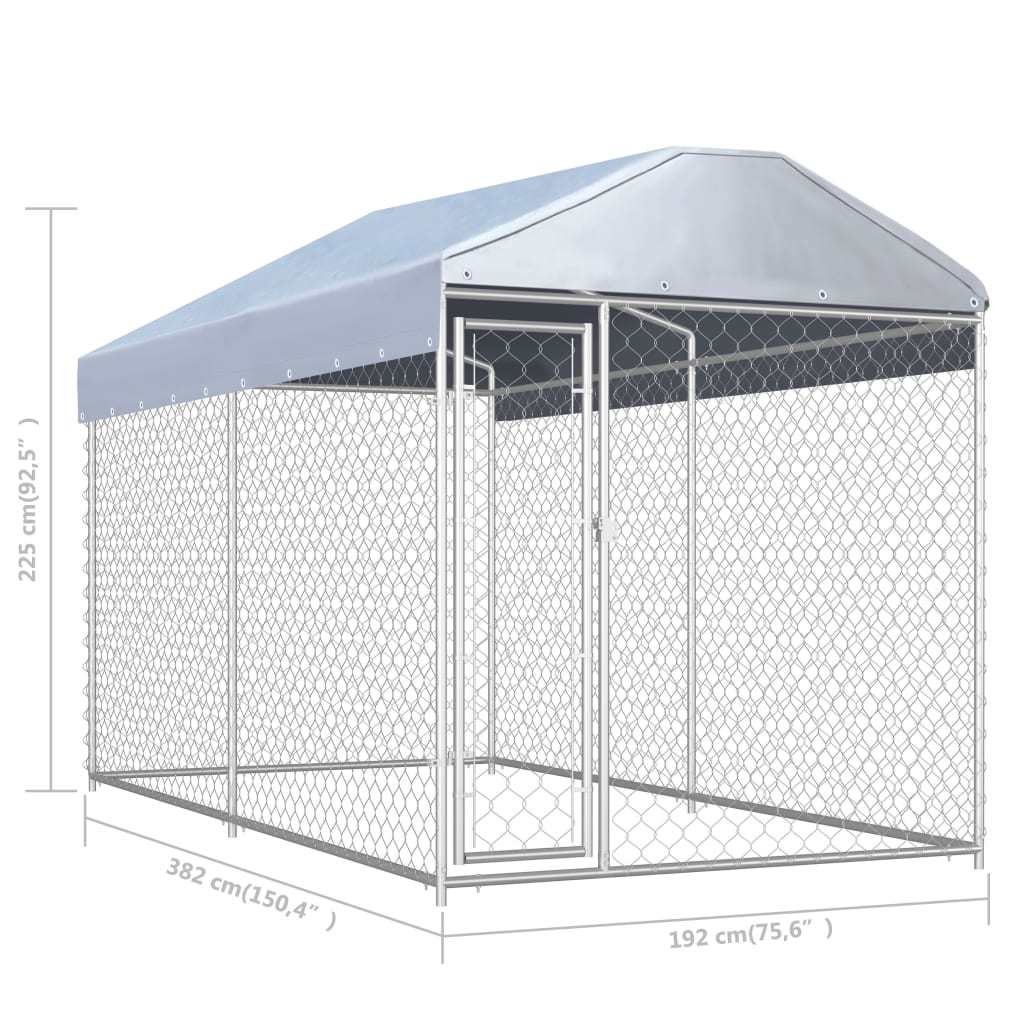 This large dog kennel provides ample exercise space while the chain link mesh all around helps prevent mischief and unexpected accidents; while enabling ventilation. Thanks to the sturdy and heavy-duty galvanized steel construction; this dog kennel is durable and built to last. The included top canopy; made of 100% polyethylene; is fire-resistant and UV protected; providing protection from sun; rain; snow and other weather conditions. The hinged door ensures extra security and safety for your dogs thanks to the lockable latch system. Assembly is easy.