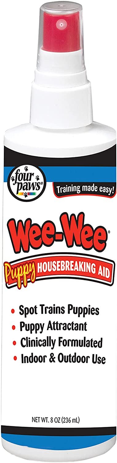 For use indoors and outdoors, the Wee-Wee Puppy Housebreaking Aid helps housetrain your dogs the easy way while protecting rugs, furniture or outside plants. Simply spray this scent that triggers your dogs natural instinct to relive itself where you'd like your dog to go!