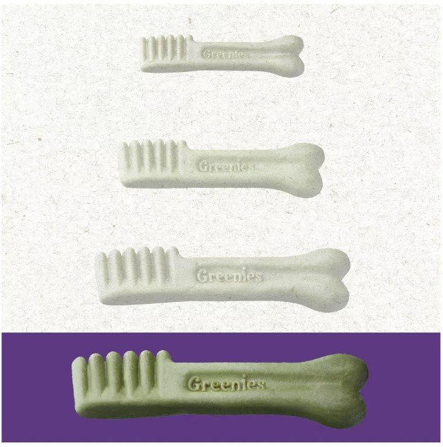 One GREENIES Blueberry Flavor Dental Treat a day is all it takes for clean teeth, fresh breath, and a happy dog. Your large breed dog can't wait to sink their teeth into these delicious dental dog chews, because they are packed with blueberry flavor and feature a delightfully chewy texture that fights plaque and tartar. Irresistibly tasty and incredibly powerful, GREENIES Treats for Dogs are vet-recommended for at-home oral health care and accepted by the VOHC (Veterinary Oral Health Council.) Best of all, these natural dog treats are made with highly soluble ingredients that are safe and easy to digest. Give your big dog the mouth-wowing treat that helps promote their overall health with GREENIES Dog Treats. Natural Dog Treats Plus Vitamins, Minerals, and Other Nutrients.