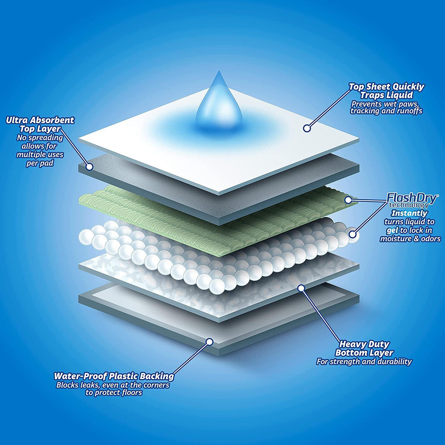 Hartz Home Protection Dog Pads are the ultimate absorbent pads to soak up your dogs messes before they spread. With advanced FlashDry technology, the pad instantly turns urine into a harmless gel that will not leak or spread. When it comes to protecting your home, Hartz has you covered.