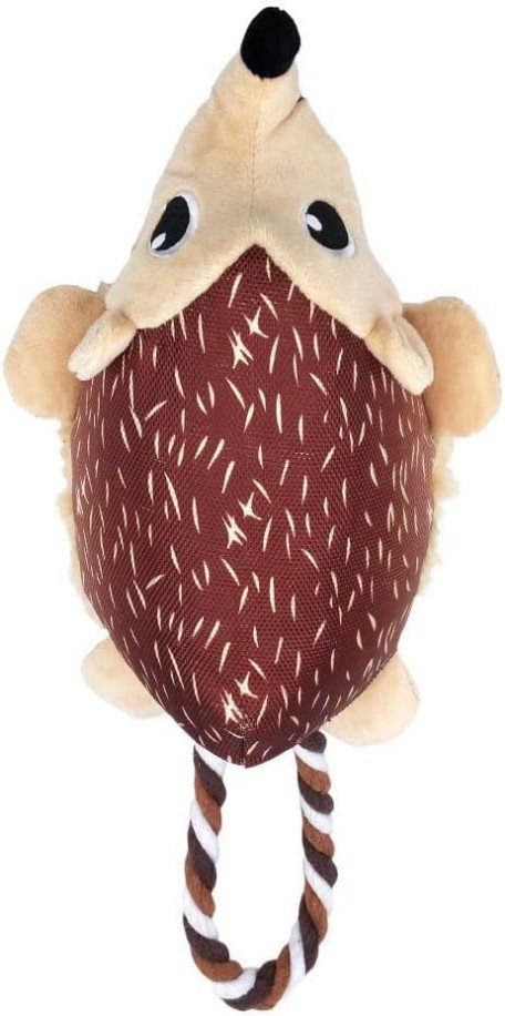 Cozie Tuggz Hedgehogs rope handle is made from sturdy cotton rope knotted inside his body for instinct-satisfying tugging action. He squeaks and crinkles to keep the fun going for lots of healthy interactive play. No spikes here, just soft plush for soothing snuggles between bouts of tug-of-war.