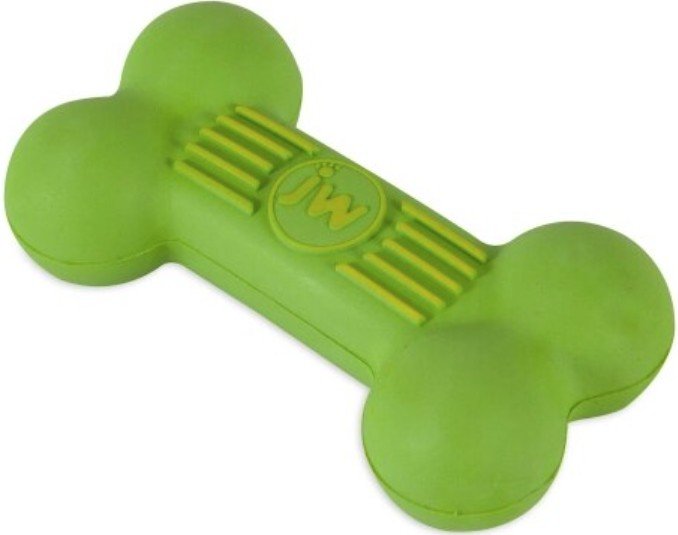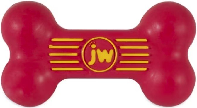 The JW Squeak-ee Bone Puppy Toy is a great toy for your puppy's auditory exploration. With an enticing long-winded squeak and fun high bounce, this little bone will be your puppy's favorite new toy. The Squeak-ee Bone is made from thick walled, heavy-duty natural rubber that is gentle on your puppy's mouth as they chew on and play with the toy. Designed just for puppies, the Squeak-ee Bone is perfect sized for your puppy's small mouth and is great for fetch too with its high, fun bounce. This product ships in three assorted colors: red, blue, and green