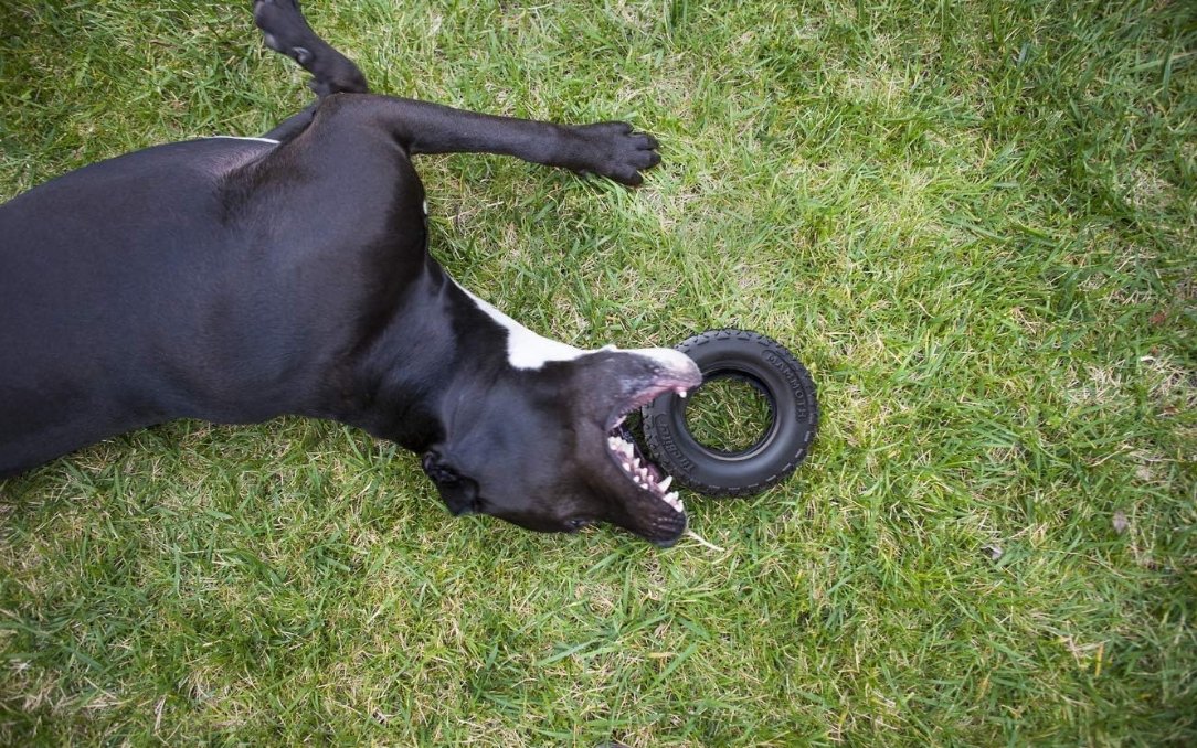 • REAL-TIRE TOUGH: These strong dog toys are ideal dog toys for extreme chewers. Dog toys in the TireBiterII range are made in North America from an advanced natural rubber formula for extra long lasting play.