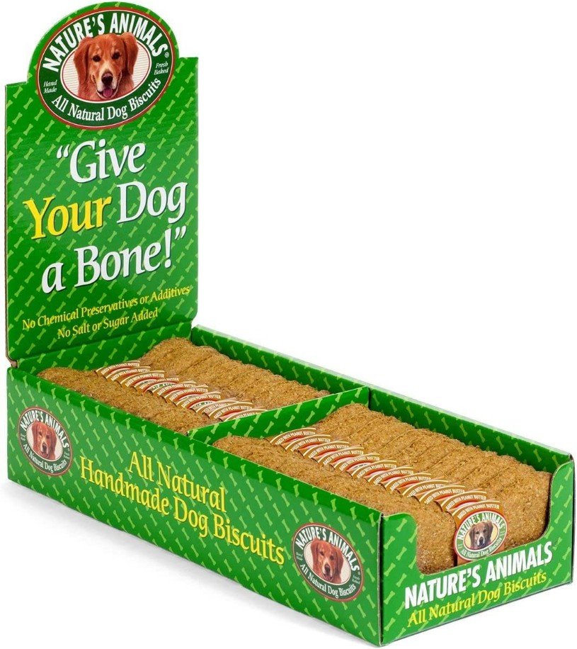 Natures Animals Dog Bone All Natural Dog Biscuits - Peanut Butter Treats are fresh baked and handmade to ensure that your pet gets the very best. With all natural ingredients and a delicious, lip-licking peanut butter taste you dog will devour.
