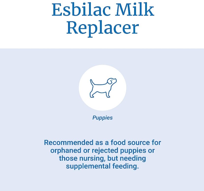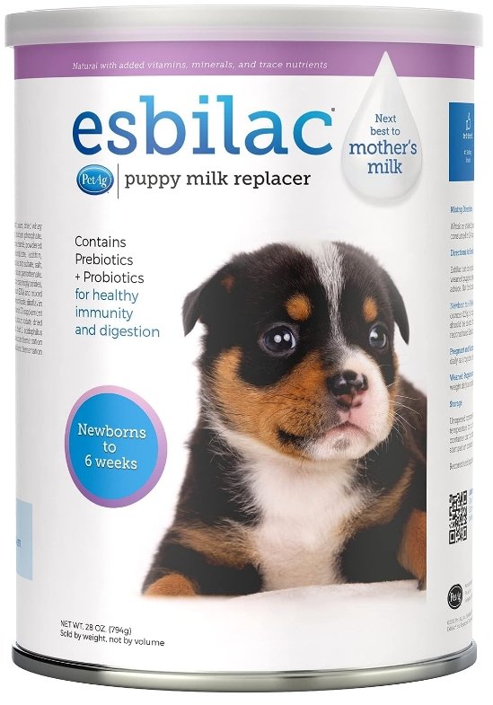 Puppies need their mamas milk, but sometimes its not enough. Sometimes its not available at all. Esbilac Puppy Milk Replacer is the worlds number 1 milk replacer for puppies and an invaluable supplement. The life-saving formula closely matches moms milk in protein and energy and is fortified with vitamins and minerals. The easy-to-mix, tasty powder simulates mothers milk for puppies, rabbits, ferrets, squirrels, chipmunks, beavers, chinchillas, guinea pigs, and opossums.