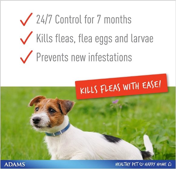 Adams Plus Flea and Tick Collar for Medium to Large Dogs kills adult fleas, ticks, flea eggs and flea larvae for up to 7 months. This collar can be fitted for all dogs.