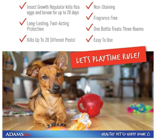 Adams Flea & Tick Home Spray protects your home from infestations by killing fleas, ticks, cockroaches, ants, spiders, mosquitoes, and other insects. It reaches fleas hidden in carpets, rugs, upholstery and pet bedding. It protects your home from flea build-up while protecting your pets and family from bites. One treatment gives continuous protection against pre-adult fleas for up to 7 months.