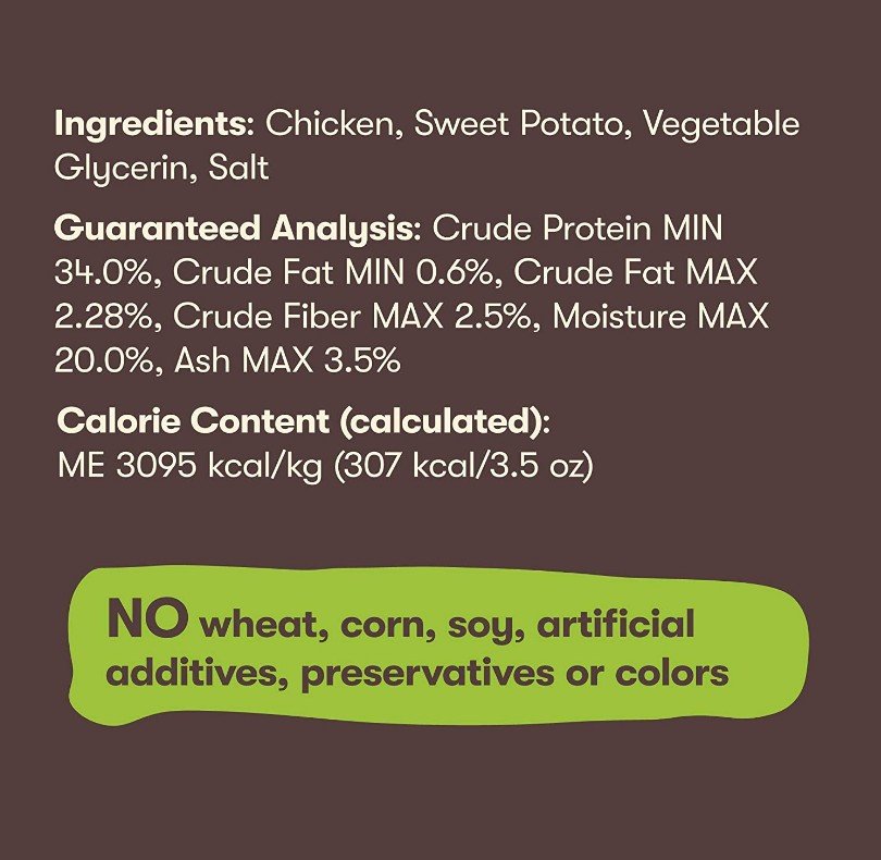 Ingredients: Chicken, Sweet Potato, Vegetable Glycerin, Salt.