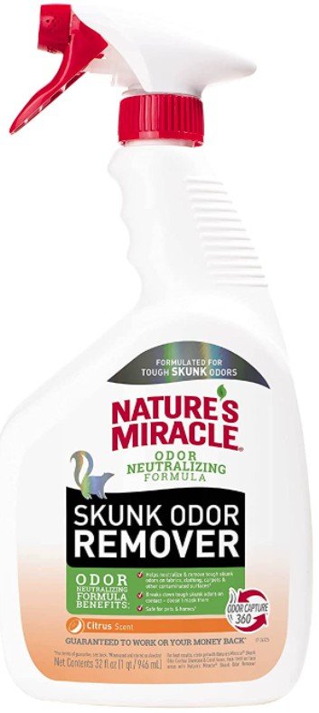 Whether it happens to you, your pet, or your home, few experiences are as daunting as being sprayed by a skunk. Natures Miracle Skunk Odor Remover helps remove skunk odors from fabrics, clothing, carpets, and other contaminated surfaces. Formulated with Odor Capture 360, Natures Miracle Skunk Odor Remover breaks down tough skunk odors on contact and doesn't mask them. The fast-acting formula breaks down the oils sprayed by skunks to help remove odor upon application, leaving a fresh citrus scent behind. Safe to use around pets and homes when used and stored as directed - see product label for use and handling instructions.