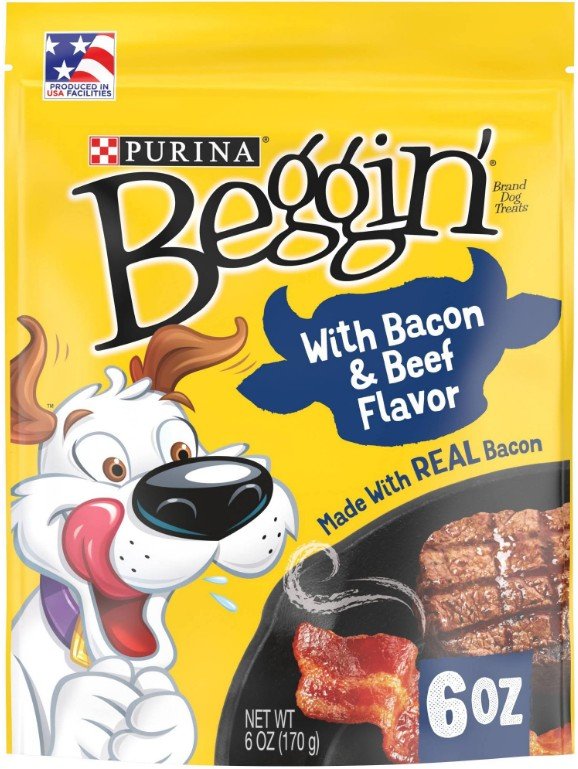 Double the meat and double the treat! Purina Beef and Bacon Beggin' Strips combine genuine swine and bovine in a taste so fine it'll blow your canines mind! A treat so good, your dog will come beggin' every time you open the bag. Purina Beggin Strip treats come in a resealable package for lasting freshness and convenient storage - and to keep your newly baconized pooch from getting in there when you're not looking.