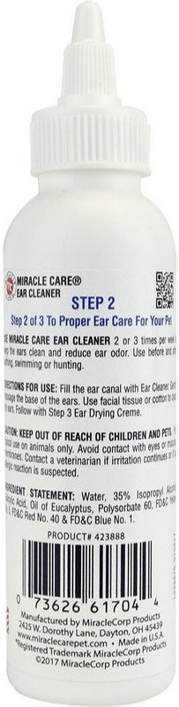 Clean and protect with Miracle Care Ear Cleaner. This remedy is used to clean the ears, reduce odor, and control ear mites and ticks. Ear Cleaner keeps ears clean and odor-free while removing ear wax.