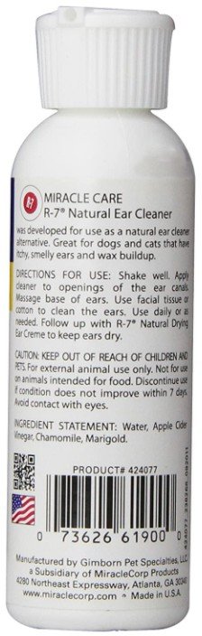 Miracle Care Natural Ear Cleaner is an all-natural ear cleaning remedy for dogs and cats. This remedy is perfect for dogs and cats who may have itchy, smelly ears and wax buildup. Natural Ear Cleaner helps control ear odor while keeping the ears dry.