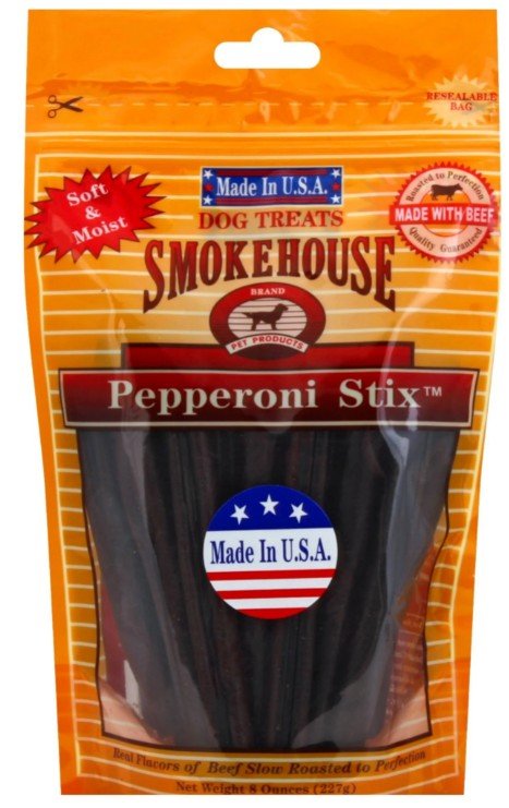 Smokehouse Pepperoni Stix are made here in the U.S.A. Basted with molasses they have a rich flavor your dog will love. They are great for any size dog and can be easily broken into small pieces for little dogs or to use as training treats. Try them today, your dog will thank you!