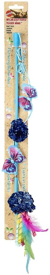 Spot cat toys are designed to appeal to your cats natural instinct for play and exercise. This fun teaser wand with fluttering butterflies and shiny mylar balls that make crinkle sounds entices kitty to play. Promotes bonding through interactive play time.