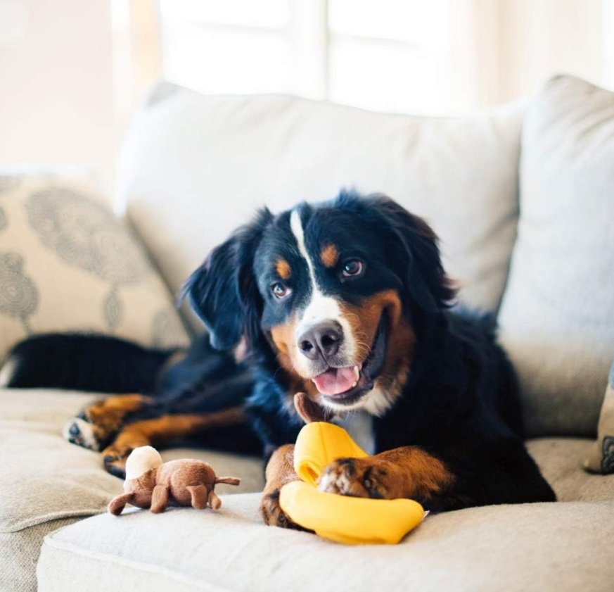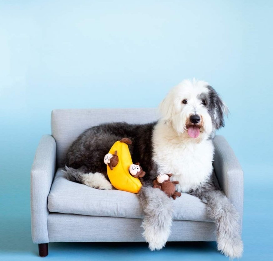 This Zippy Burrow toy is bananas, B-A-N-A-N-A-S! And your dog will love monkeying around trying to find the pint-sized primates inside! Once your playful pup has them all out, theyll be begging you to put them back in again and again for hours of fun! Its the perfect interactive toy for keeping your dog busy and engaged through hide-and-seek play that prevents boredom and promotes mental stimulation!