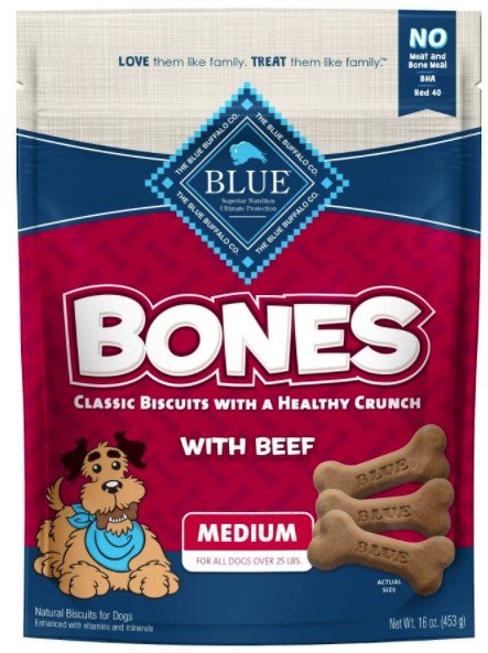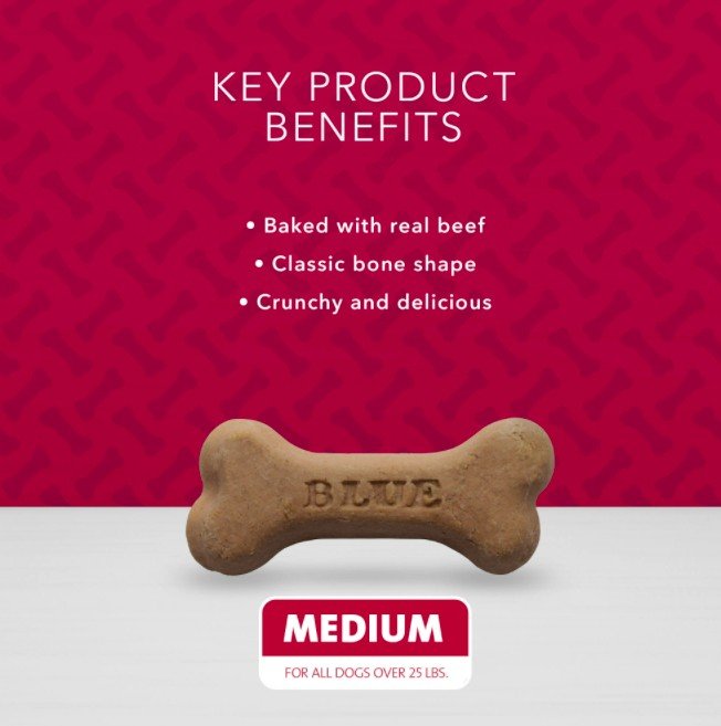 Baked with real beef and a crunch no canine can resist, BLUE Bones dog treats will keep tails wagging for more. Ideal for everyday treating, these delicious biscuits feature the healthy ingredients dogs love and theyre baked to perfection for that classic crunch. Just treat, wag and repeat!