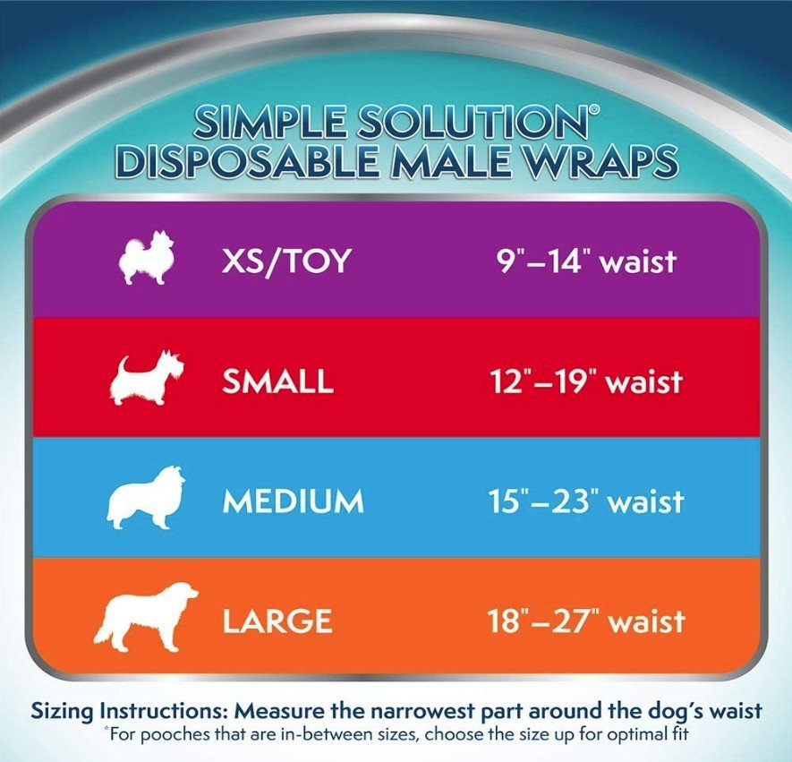 Simple Solution Small Disposable Male Wraps provide a convenient, secure solution for male marking, excitable urination, incontinence, and nervousness during travel. These super absorbent, leak-proof wraps feature fur-friendly fasteners to keep your dog comfortable, and a wetness indicator so you know when its time for a change.