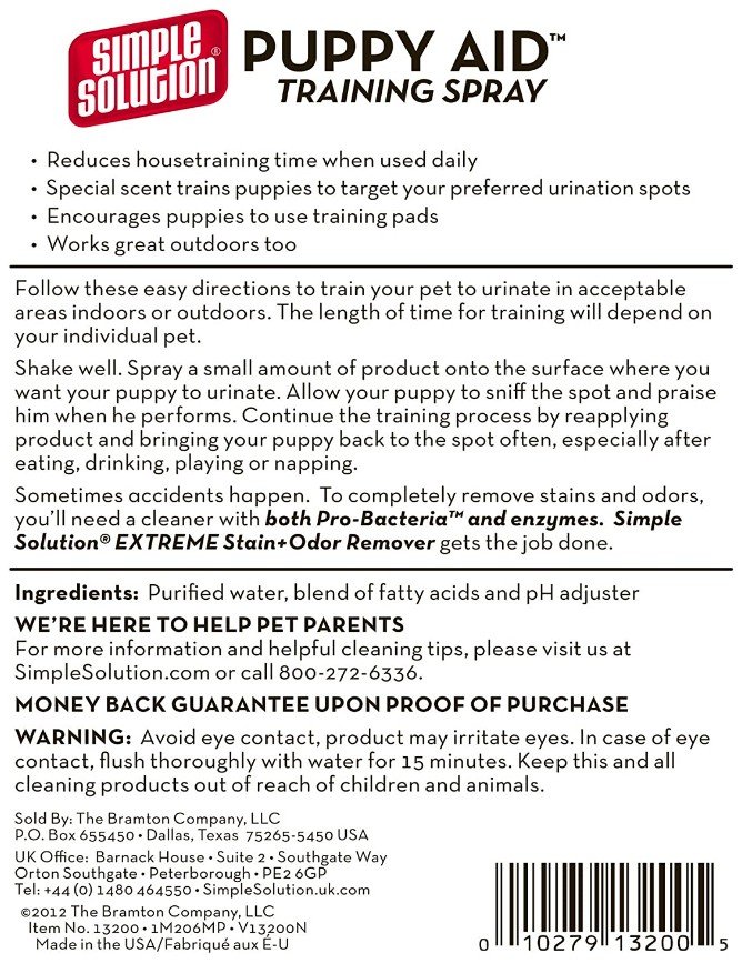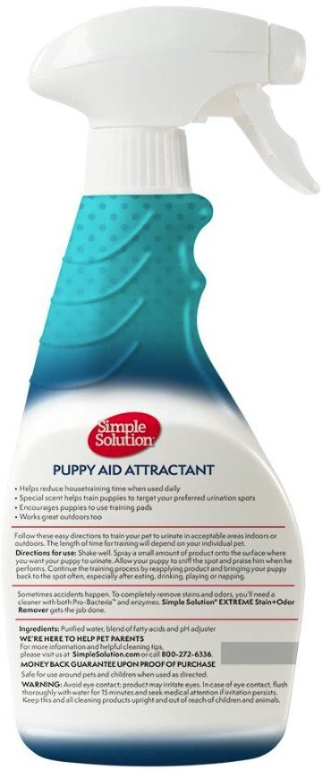 Simple Solution Puppy Aid Attractant is a scientifically formulated attractant. Using this simple potty training aid will help train a puppy to urinate in the appropriate area.