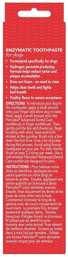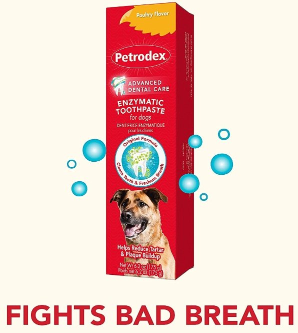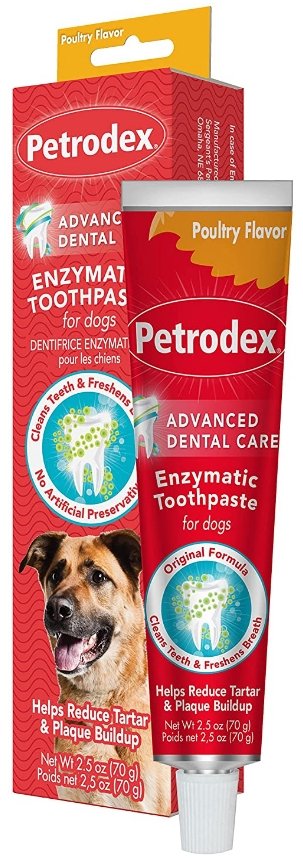 Petrodex Enzymatic Pet Toothpaste is formulated specifically to help control plaque and fight bad breath for dogs. It does not foam and doesn't need to be rinsed! With the delicious poultry flavor, your dog will love getting his teeth brushed.
